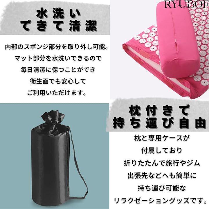 「枕付きで持ち運び便利」 専用ケースと枕がセットになり、折りたたんでコンパクトに持ち運べるので、自宅はもちろん外出先でも気軽に使用できるセルフリラクゼーショングッズです。