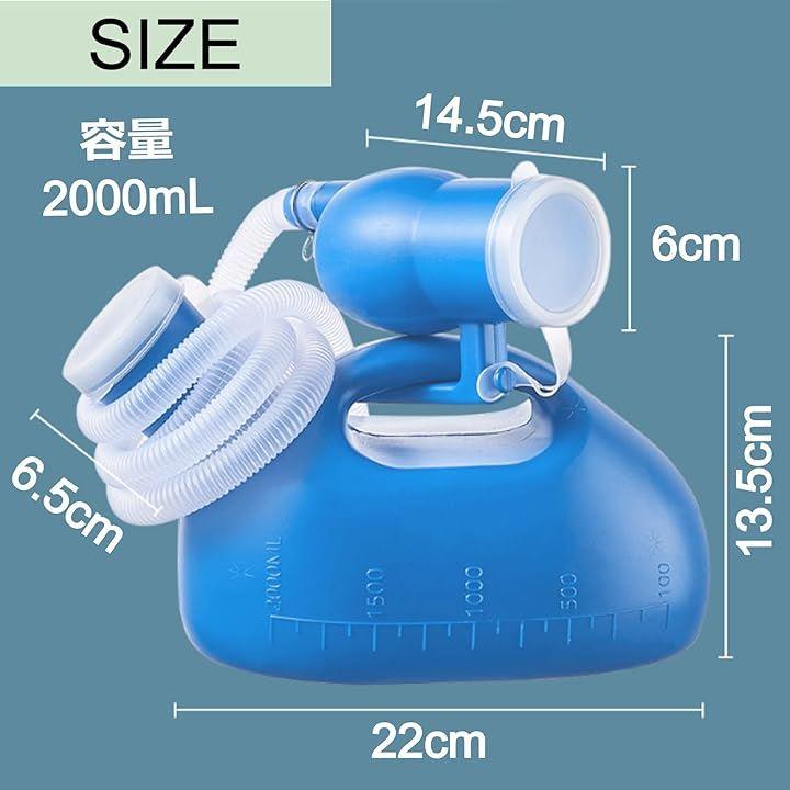「商品内容」1.6mホース付きし尿瓶 容量2000mL カラー:ホワイト、ブルー サイズ:画像参照 材質:プラスチック