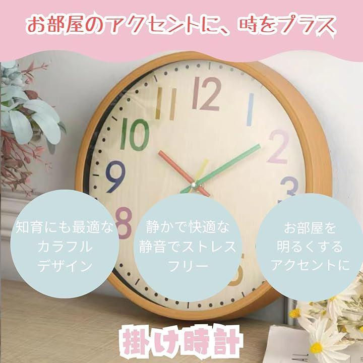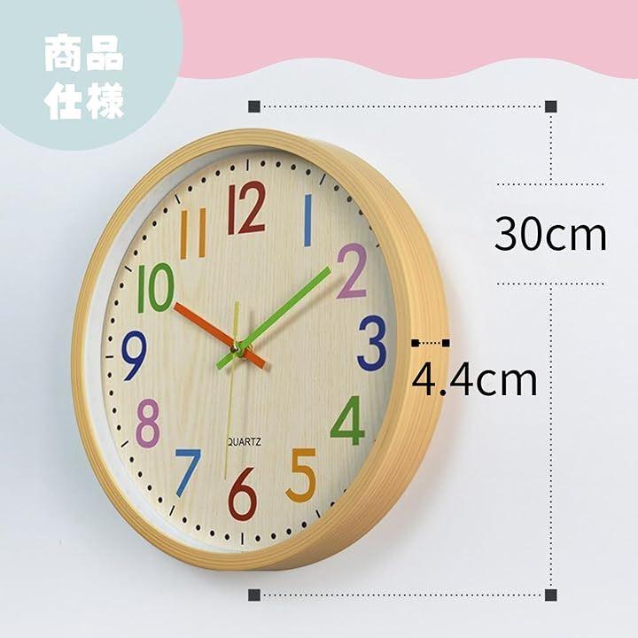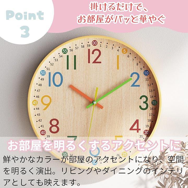 「知育にも最適なカラフルデザイン」数字と秒針を色分けすることで、時間が直感的にわかりやすく、小さな子どもでも楽しく時計の読み方を覚えられます。