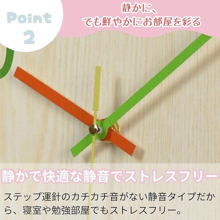 「お部屋を明るくするアクセントに」ナチュラルな木目調フレームとカラフルなフェイスが調和し、空間に明るさと遊び心をプラス。