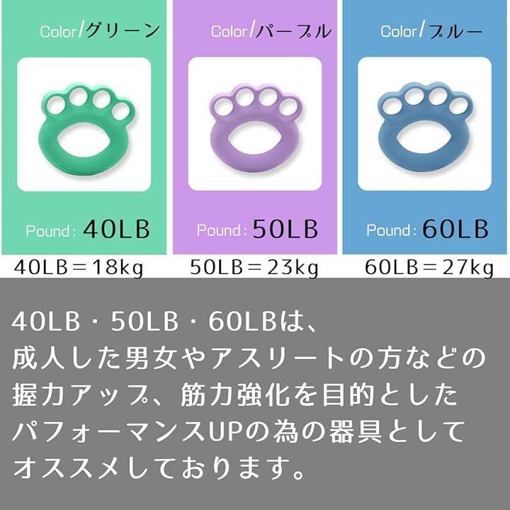 グリーン・パープル・ブルーは成人した男女やアスリートの方などの握力アップ、腕の筋力強化を目的とした運動の際のパフォーマンスUPの為の器具として最適です。