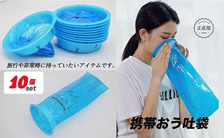 乗り物酔い、つわり、防災用に便利な携帯おう吐袋、尿袋、汚物処理1,000mlブルー10個セットです。
