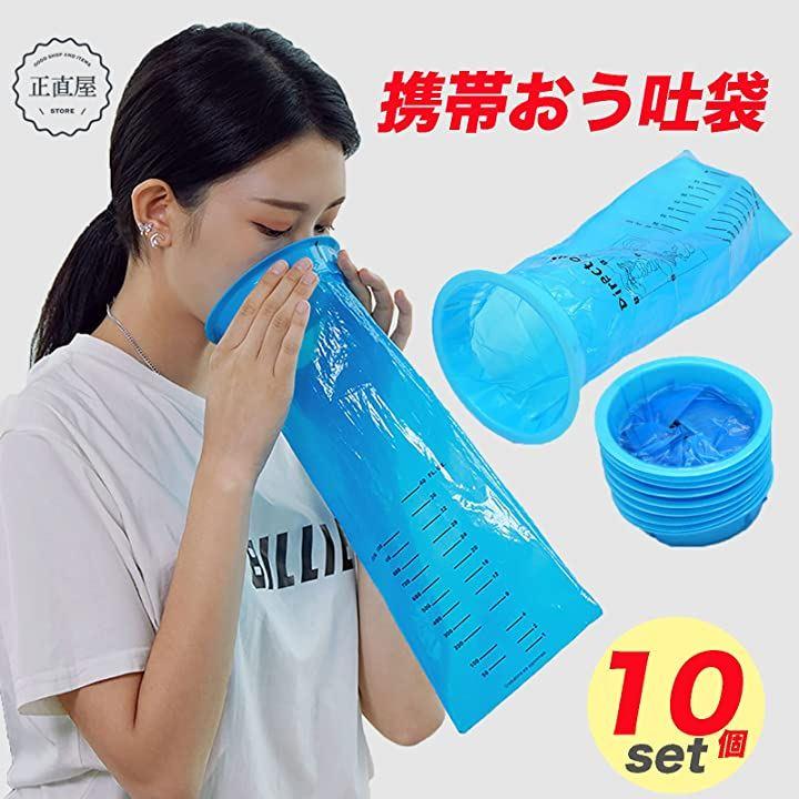 ・乗り物酔い、つわり、防災用に便利な携帯おう吐袋、 尿袋、汚物処理 1,000ml ブルー 10個セットです。