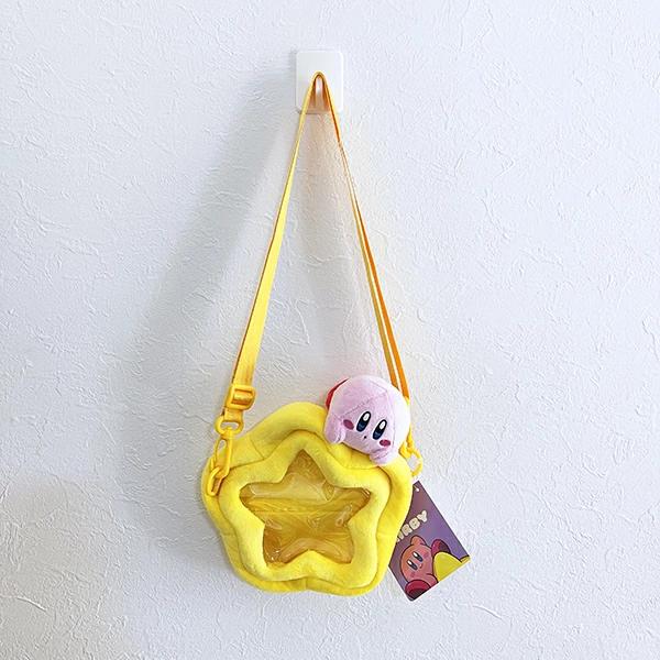 ワープスターカービィのショルダーバッグです♪ポーチ部分が透明になっているので、中に入れたものが見えるデザインでとってもユニーク!星の上にちょこんと乗っているカービィもカワイイです☆彡紐の取り外しも可能なので、ポーチとしても使って頂けます♪触り心地も◎