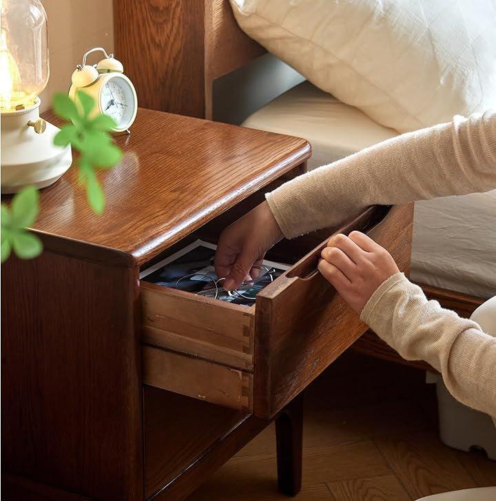 天然のオークとアオギリ無垢材により作られ、ベニヤやMDFで作られたベッドサイドテーブルよりも頑丈で長持ちします。