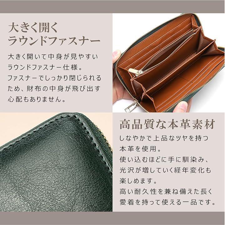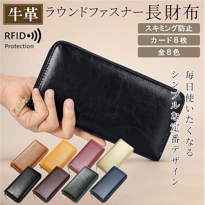 ラウンドファスナー付きの本革長財布は、年齢や性別を問わず幅広く好まれるベーシックなスタイル。