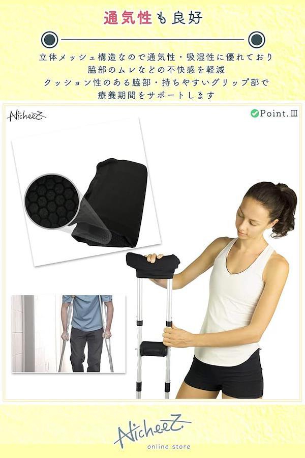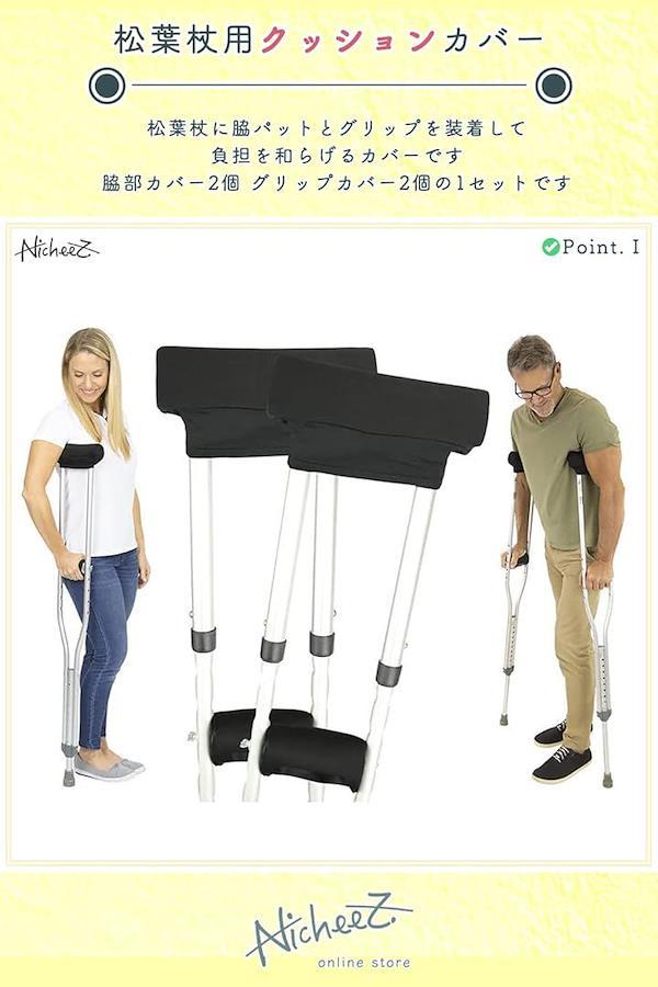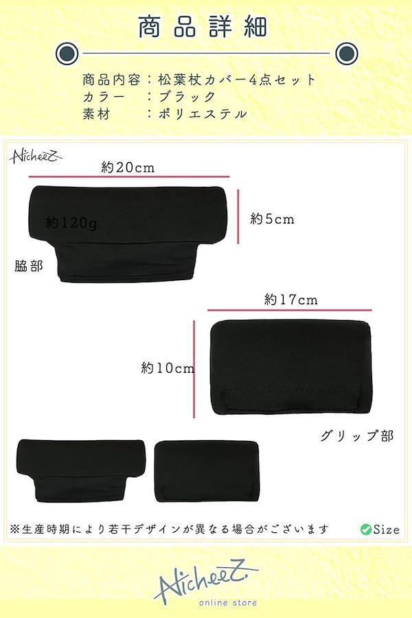 「商品内容」松葉杖カバー4点セット セット数:4点 素材:ポリエステル カラー:ブラック サイズ:脇部横/約20cm 縦/約5cm グリップ部横/約17cm 縦/約10cm