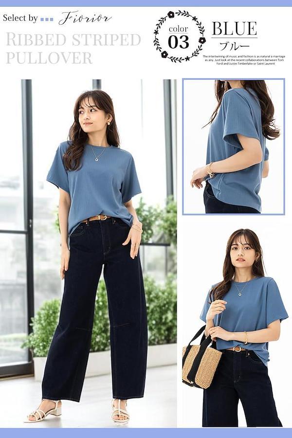 「シンプルおしゃれ」さりげないリブ生地が優しい肌触りを演出する、着回ししやすい無地のトップスです。