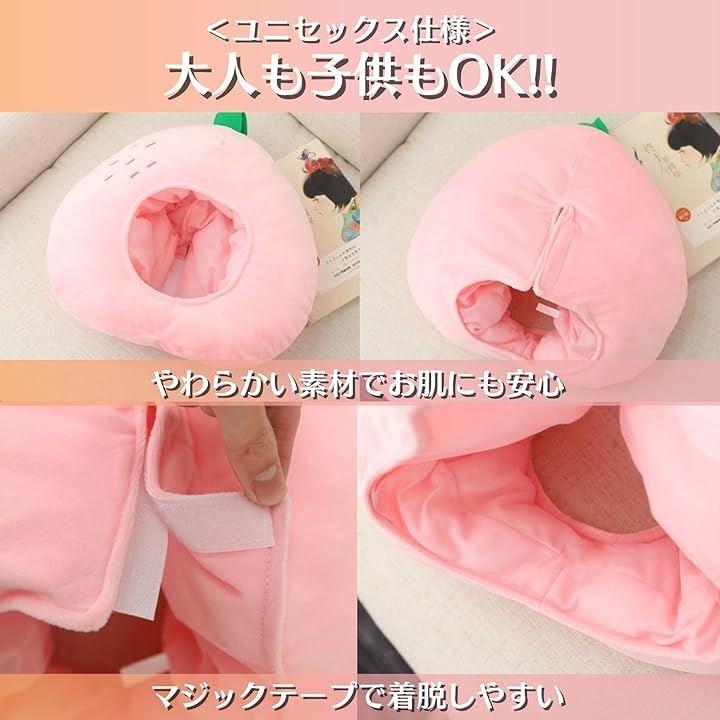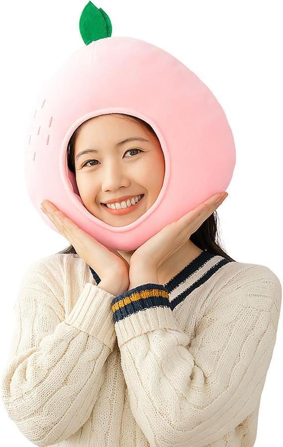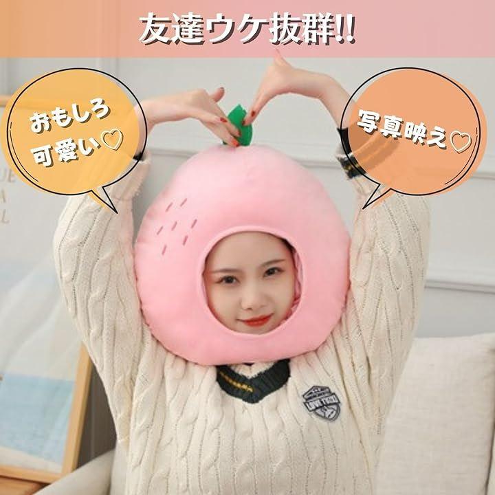 ふわふわ素材とキュートな桃のデザインで、見る人の心を掴むかぶりもの。