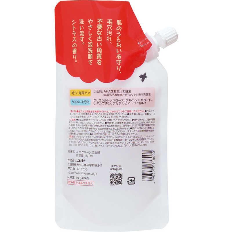 毛穴汚れや古い角質による、黒ずみ・くすみ・ザラツキ、お肌の悩みをやさしく泡で洗い流します。●アミノ酸系洗浄成分の泡でやさしく洗う。●毛穴・角質ケア。・火山灰:毛穴の奥の汚れもしっかり吸着し、やさしく泡で洗い流す。・AHA含有果汁発酵液:お肌の表面の古い角質をソフトピーリング。●うるおいを守る。・スーパーヒアルロン酸:保水力の高いヒアルロン酸。・セラミド:うるおいを保つことでお肌のバリア機能を守る。・α-アルブチン:うるおいを与えお肌を整える。・グルコシルトレハロース:お肌を保護し乾燥から守る。●シトラスの香り。●つめかえ用。