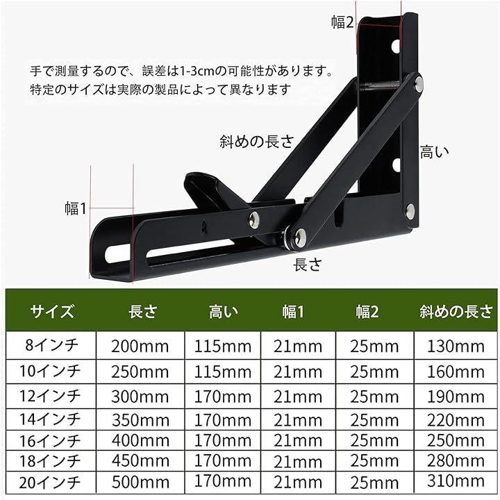 「実用で広い用途」幅広いモデルと強力なサポート:モデルには、さまざまなサイズ要件を満たすための8 / 10 / 12 / 14 / 16 折りたたみブラケットが含まれています。壁の空間でも使え、収納ラックや本棚にとしても使えます、食事用テーブル、本棚、キッチン棚、展示台、花園棚、外壁の支柱などとして使えます。