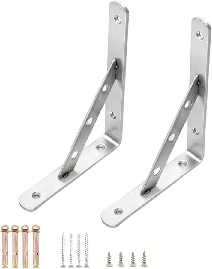 このL字型の棚受け金具は、高強度なステンレス製で厚さ3mmのしっかりとした作りです。