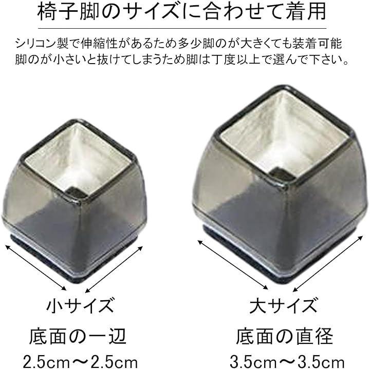 小(底面2.5cm)、大(底面3.5cm)と2サイズあるので、取り付け予定の椅子脚の底面のサイズを計測して下さい。
