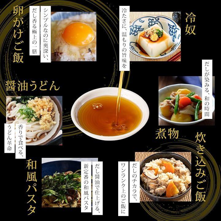 2日間かけた水出し製法で、旨味と香りを丁寧に引き出しただし醤油です。