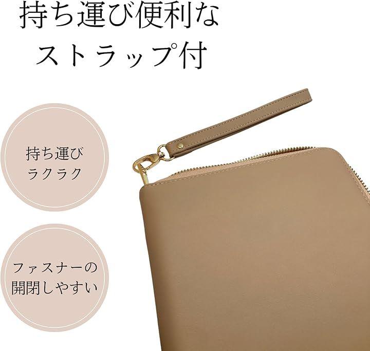 ファスナー付きポケット、カードポケット、印鑑ホルダー、ペンホルダー、A6・B6サイズ対応の手帳ポケットなど、整理しやすい多機能設計で、いつでも必要なものをスッキリまとめられます。
