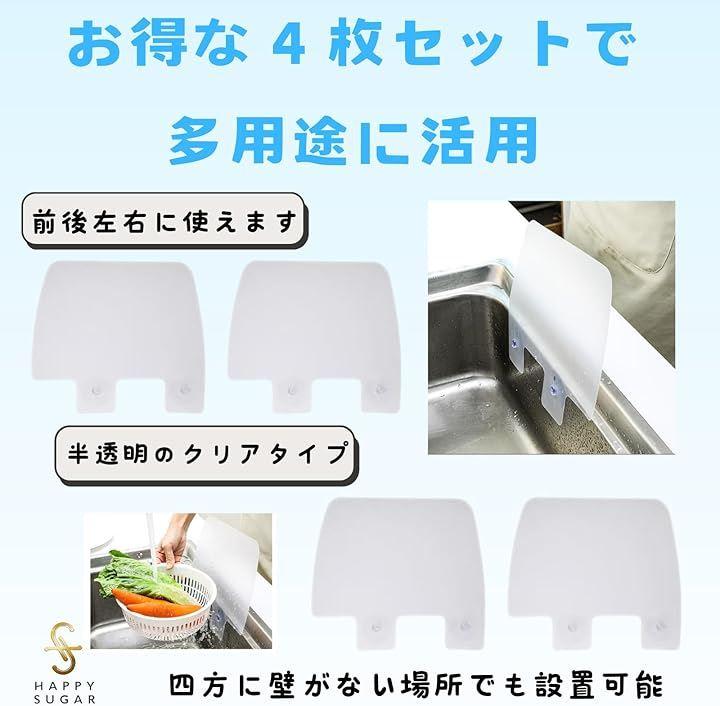水はね防止 シート パネル キッチンパネル ガード プレート スタンド スクリーン 台所 シンク 流し台 洗面台 食器洗い 4枚セット
