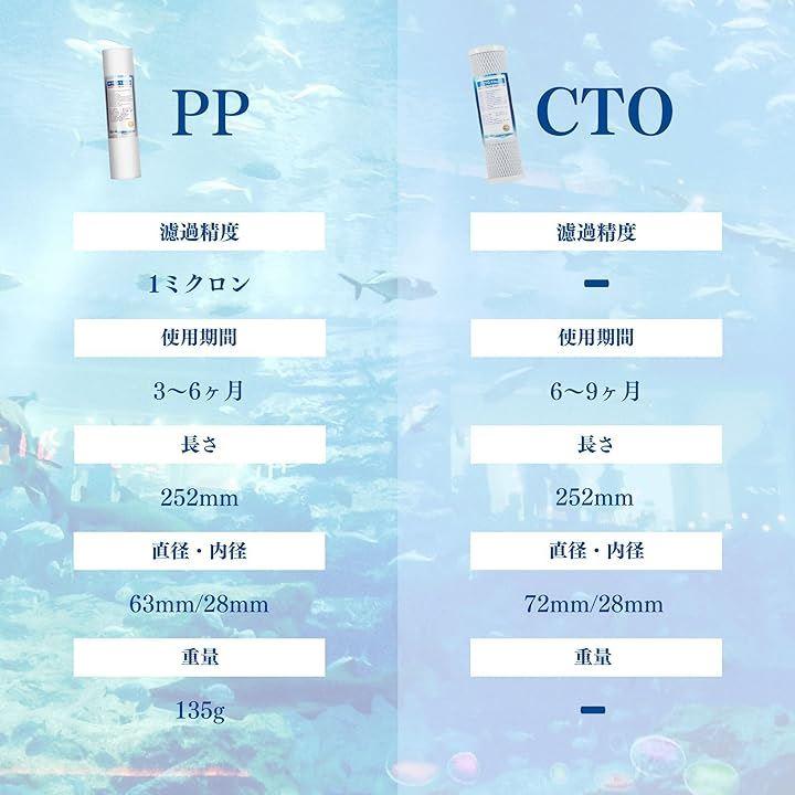 CTO フィルター:ヤシ殻混合活性炭の二層構造で塩素、臭い、不純物を除去します。