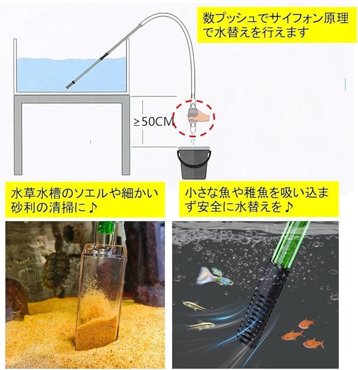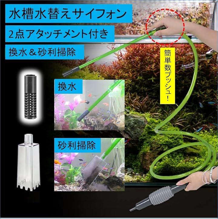 水槽 手動 水交換 水替え 換水&砂利掃除 アタッチメント付き 販売。サイフォン 式 底砂用クリーナー 熱帯魚 金魚 海水魚 メダカ 飼育に是非。