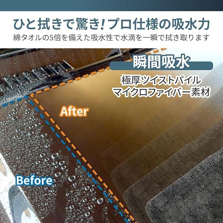 極厚ツイストパイルマイクロファイバーを採用しており、1度拭くだけで瞬間的に吸水します。