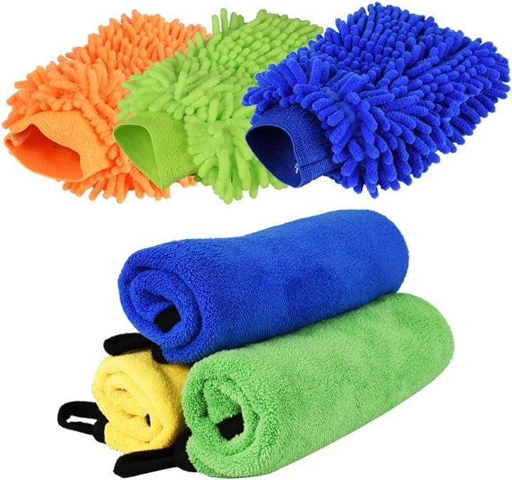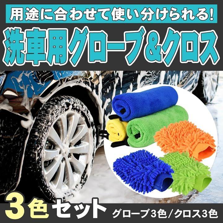 「セット内容」洗車グローブx3点 洗車クロスx3点
