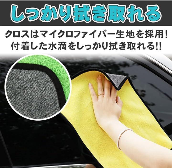 マイクロファイバー素材を使用したクロスは、洗車後の拭き取りに重宝します。