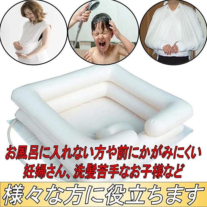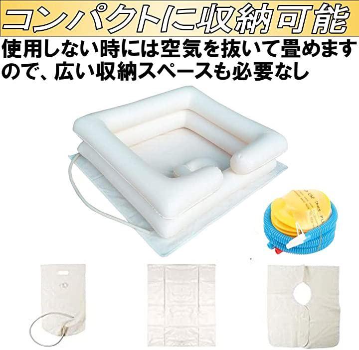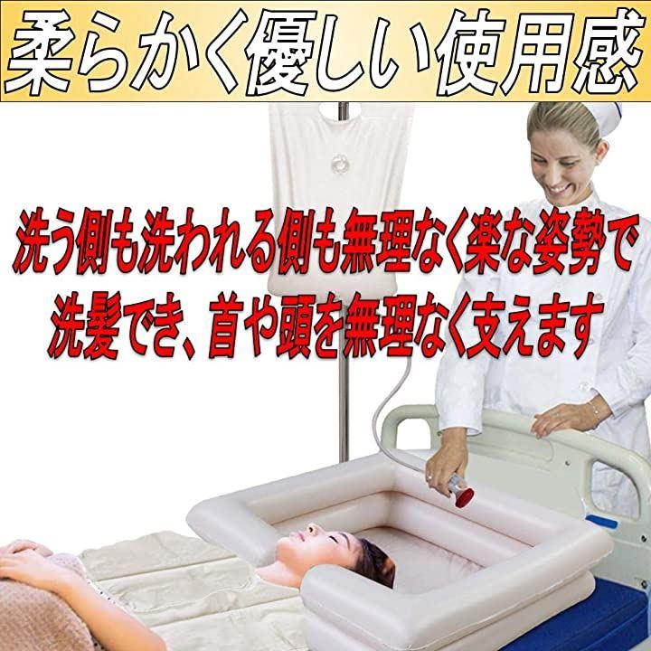 ・「便利なセット商品」洗髪槽には簡易シャワー・枕・防水シート・エプロン・排水チューブ・エアーポンプなどがセットになっていますので、お湯とタオルとシャンプーさえ用意すればすぐに洗髪することができます。