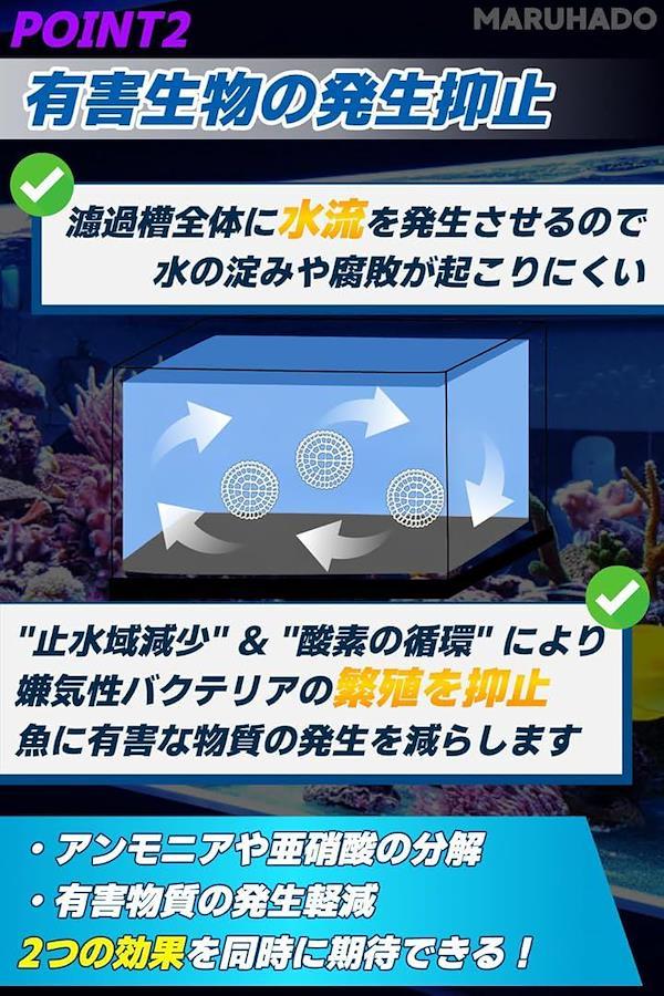 ・「高効率な水処理」本製品を投入してエアレーションやサーキュレーター等を使ってフィルターを水中で流動させてください。