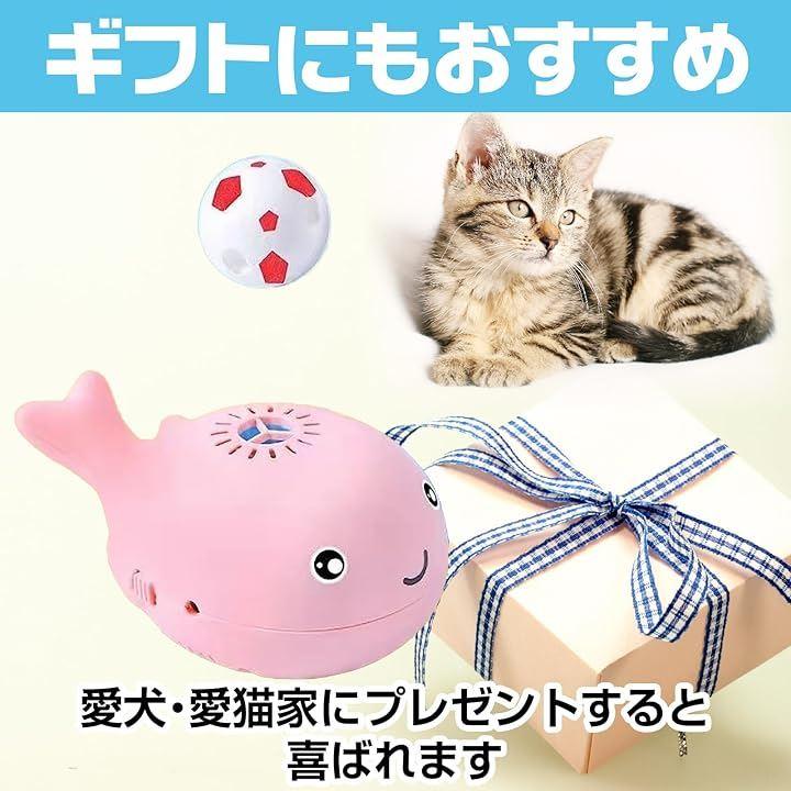 「インタラクティブな猫用おもちゃ」 クジラ型のかわいいデザインから浮かび上がるボールが、猫の狩猟本能を刺激し、自然と追いかけたりジャンプしたりする動きを引き出します。