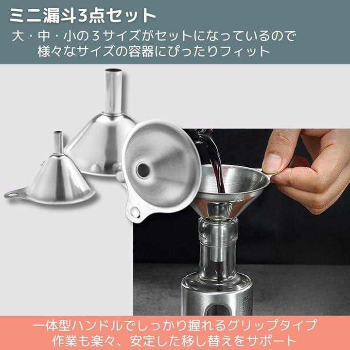 「スマートな移し替えを実現。」ステンレス製ミニ漏斗3点セット。