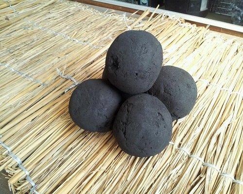 炭団(たどん)とは、炭の粉末を布海苔などの結着剤と混ぜ球形に固めて乾燥させてつくる伝統的な固形燃料です。一定の温度を一定時間保つことができるのが特徴で、古くから火鉢・こたつの燃料として愛用され、また弱火で長時間煮炊きするのに重用されています。火付きも良く、爆ぜる(爆跳)ことも無く、臭気が少ない優れもの。火鉢、囲炉裏、堀こたつ等でのご利用にオススメです。