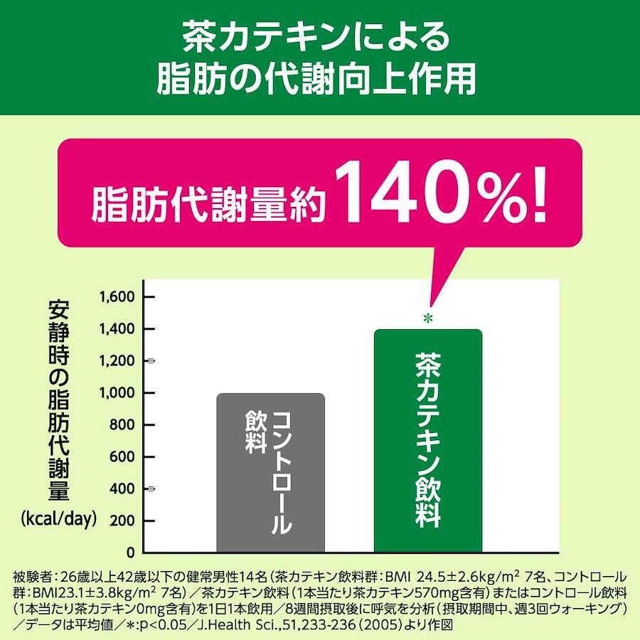 【許可表示】本品は、脂肪の分解と消費に働く酵素の活性を高める茶カテキンを豊富に含んでおり、脂肪を代謝する力を高め、エネルギーとして脂肪を消費し、内臓脂肪を減らすのを助けるので、内臓脂肪が多めの方に適しています。食生活は、主食、主菜、副菜を基本に、食事のバランスを。