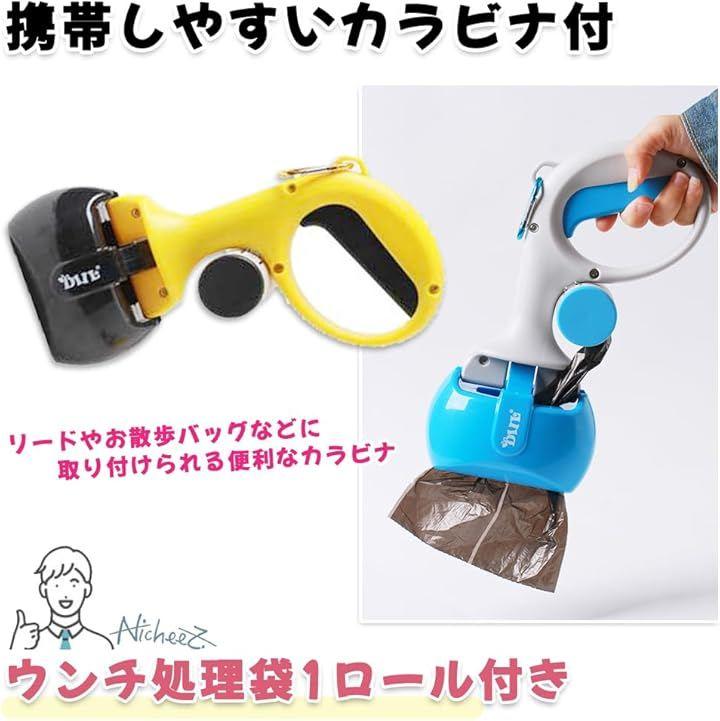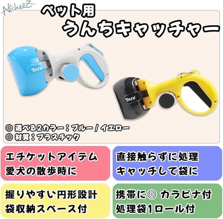 「商品内容」 ペット用うんちキャッチャー 材質:プラスチック カラー:ブルー/レッド/イエロー サイズ:横/約12.5cm 縦/約25.5cm お試しフン処理袋1ロール付属