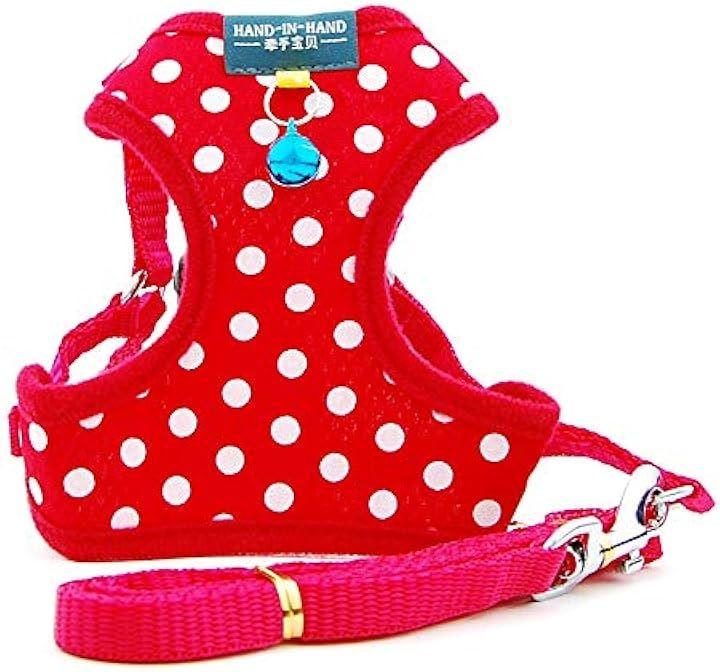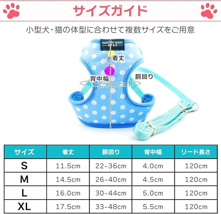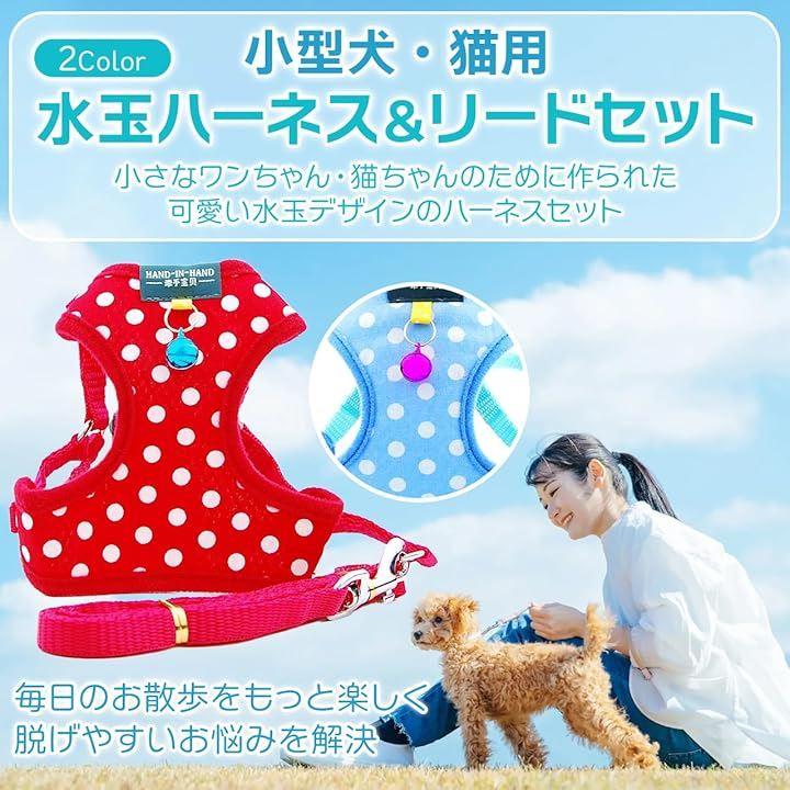やさしい着用感とかわいらしさを両立:ポップな水玉模様が目を引く、小型犬用のハーネスリードセットです。