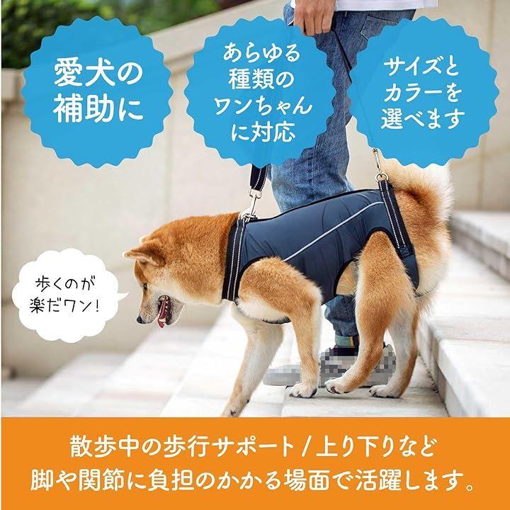 v「機能・補助&介護」前足・後ろ足を包み込む胴輪のデザインで階段の上り下りや車の乗り降りをしっかりサポート。