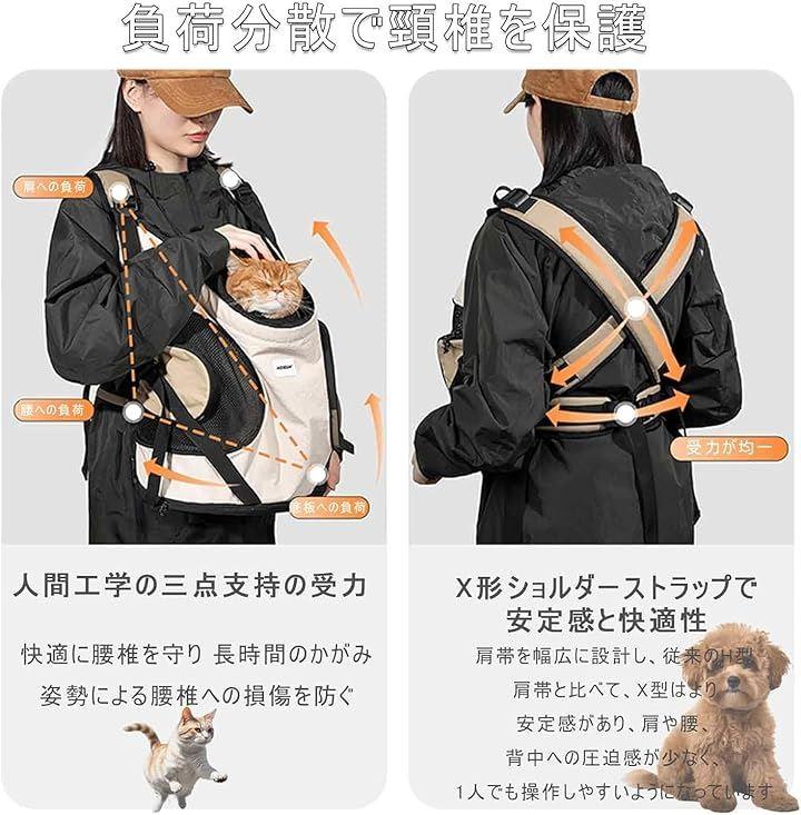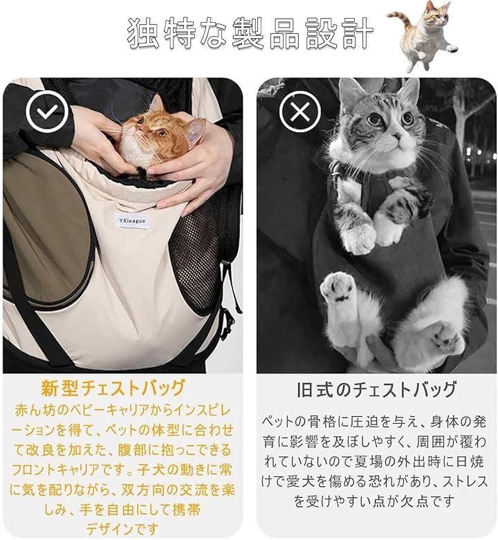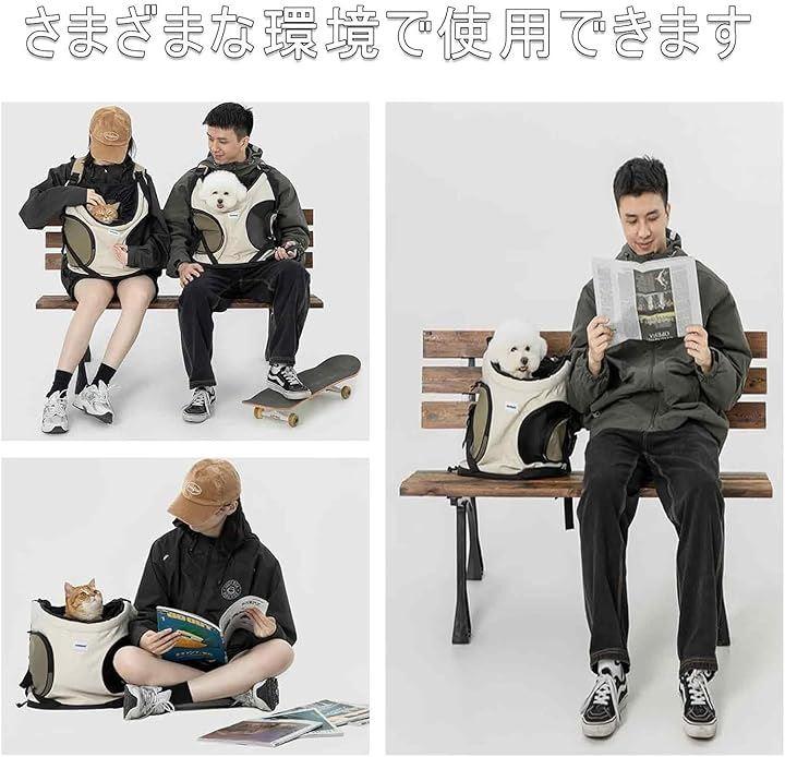 「 前抱き安心感」ペットと一緒に出かける時お互いの顔が見える安心。更に外の風景満喫でき、ペットに快適を感じさせ。