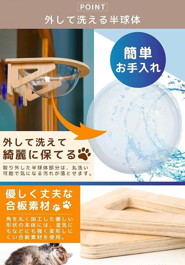 愛猫に特別なくつろぎ空間を。透明な半球型ドームと天然木フレームを組み合わせた猫用窓ベッドです。