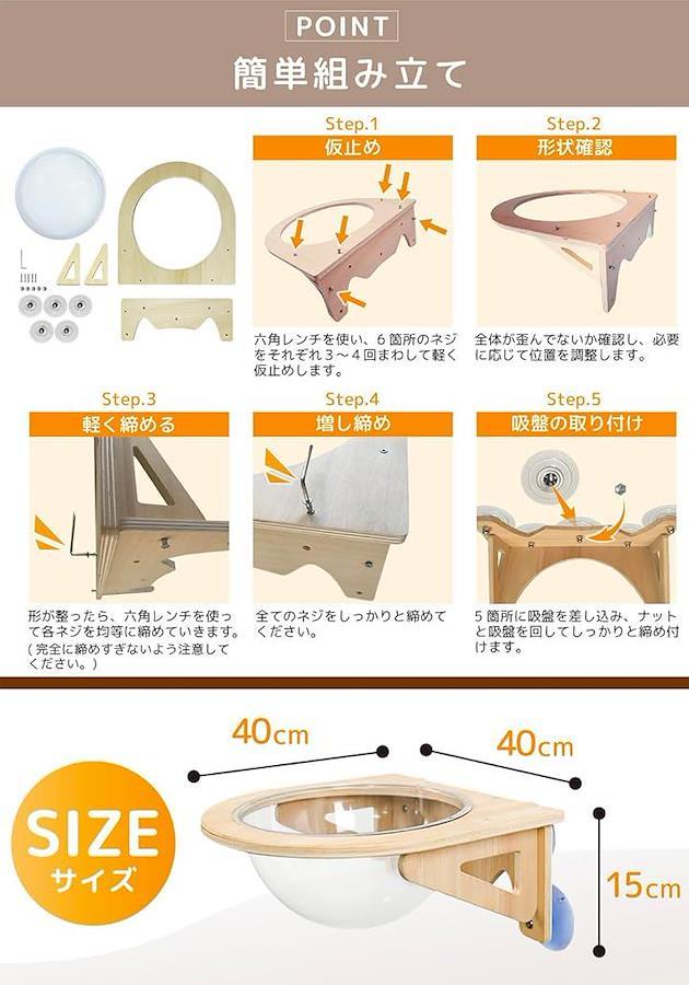 「スペース節約&猫カフェ気分」 窓に取り付けるデザインで床のスペースを占有せず、お部屋が広々。