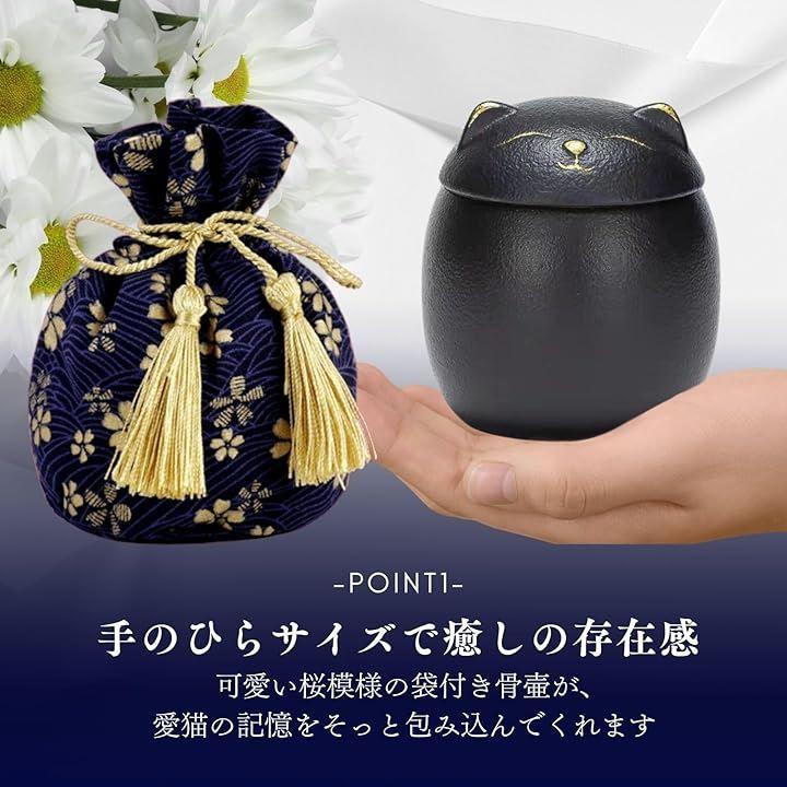 可愛い猫デザインの陶器製の骨壷 ミニ:手のひらサイズの猫型の骨壷が、いつもそばでペットの思い出を温かく守ります。