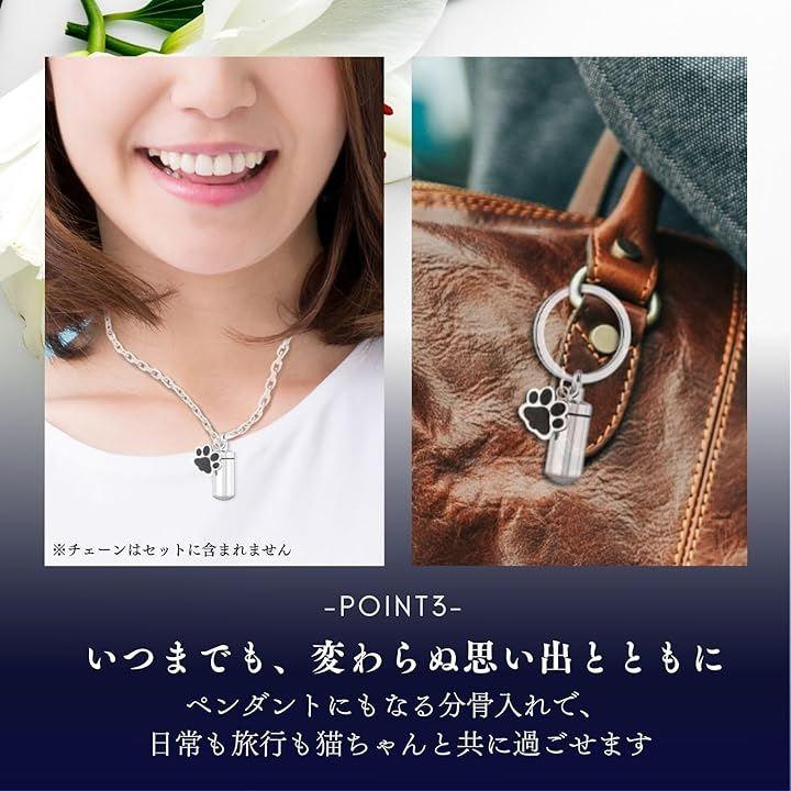 愛猫との絆を感じるミニ骨壷と防水キーホルダー型分骨入れのセット。