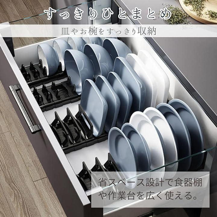 皿やお椀、鍋蓋などを立てて収納できるので、取り出しやすく、食器棚の整頓にも役立ちます。