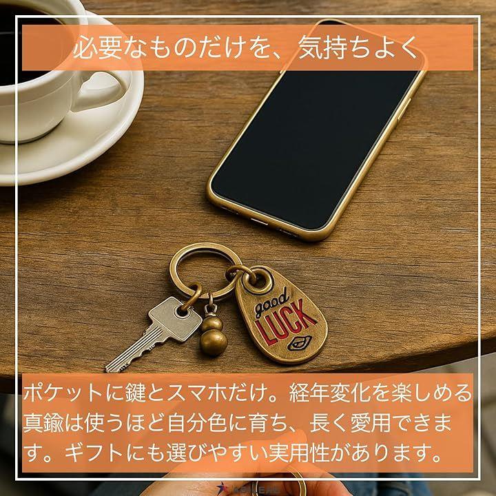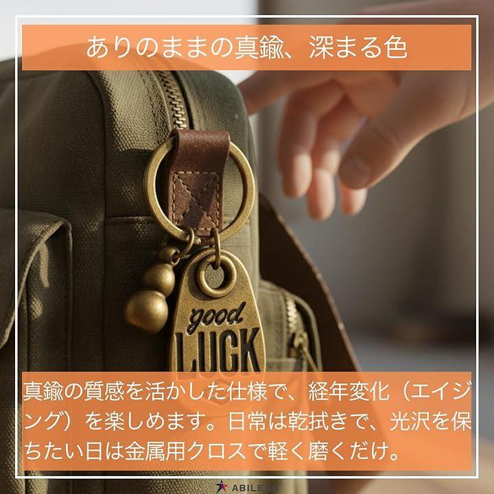ABILEADのアメリカンテイスト「グッドラック」キーホルダーは、真鍮ならではの深い色味と重みを活かし、手に取った瞬間に小物好きの心をつかむデザインです。