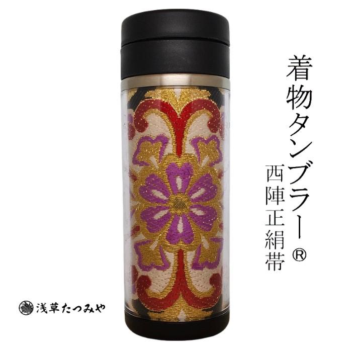 日本伝統の西陣正絹帯を素材に、最も美しい柄の部分を使用した「浅草たつみや」の着物タンブラー。当店では一本の帯から美しい柄の部分だけを厳選し創作するので、それぞれに柄の表情が微妙に違います。