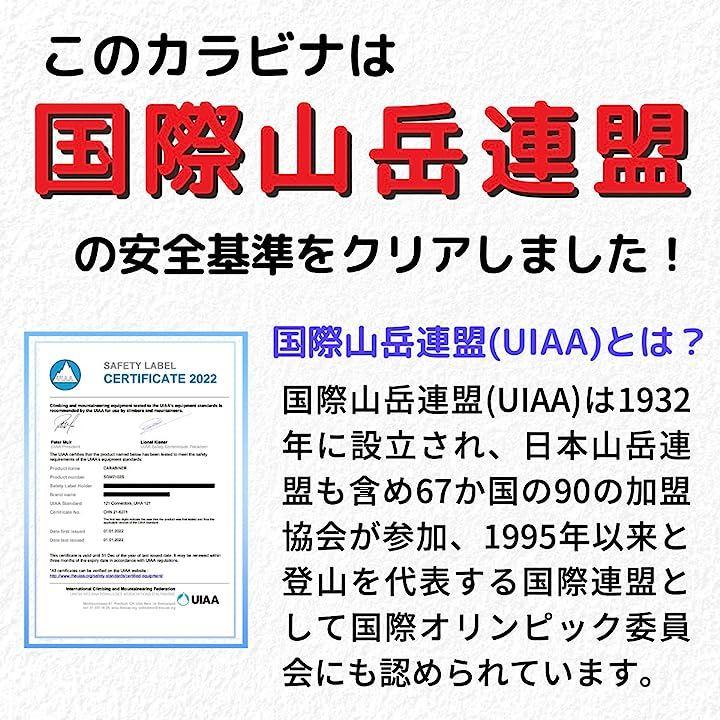 「安全性」国際山岳連盟(UIAA)の厳しい安全基準をクリアしたカラビナでCE,ENマークも取得しています。