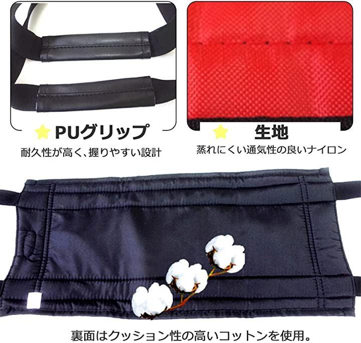 ・介護用移乗ベルトは、PUグリップで、ハンドルの耐久性を高め、握りやすい設計。