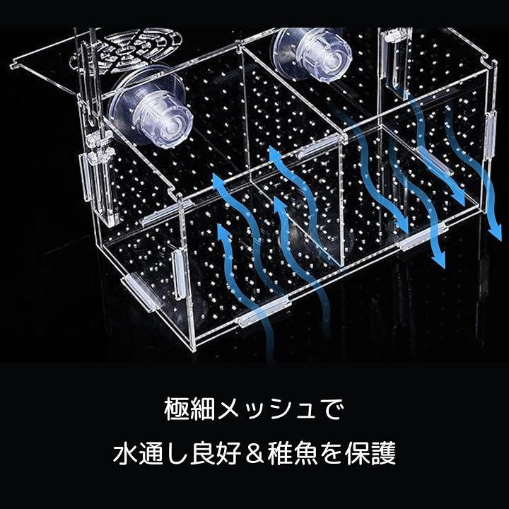 「稚魚保護」このボックスは、稚魚を他の魚から隔離し、安全に育てるための理想的な環境を提供します。