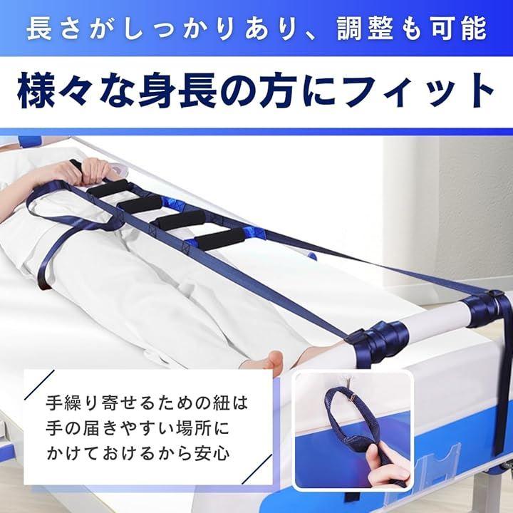 調節可能で幅広い対応 ベルトの長さは全長298cmあるため、使用者の体格やベッドのサイズに応じてカスタマイズできます。