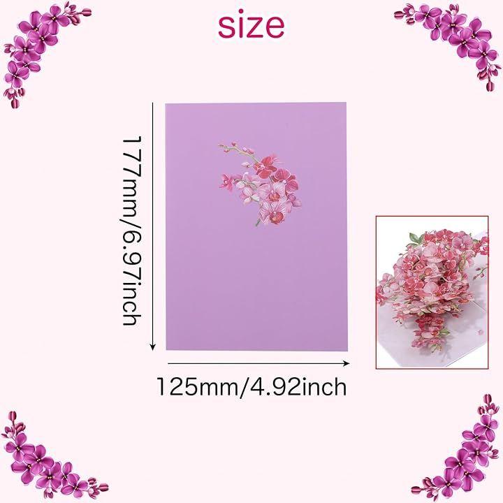 《サイズ》177x125mm《デザイン》胡蝶蘭 / 桃 《セット内容 》3Dグリーティングカードx1枚(ミニメッセージカード内蔵)・封筒x1枚