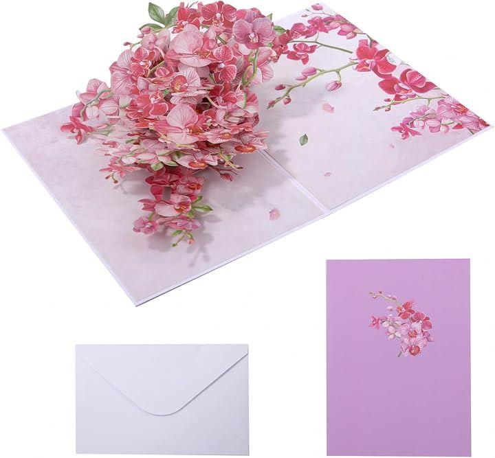 Sweet Plus「立体 グリーディング カード メッセージカード 飛び出す ポップアップ 3D 手紙 お祝い 寄せ書き 誕生日 記念日 花柄」華やかに咲き誇る胡蝶蘭・桃の花が立体的に飛び出す、特別感あふれる3Dポップアップのグリーティングカードです。