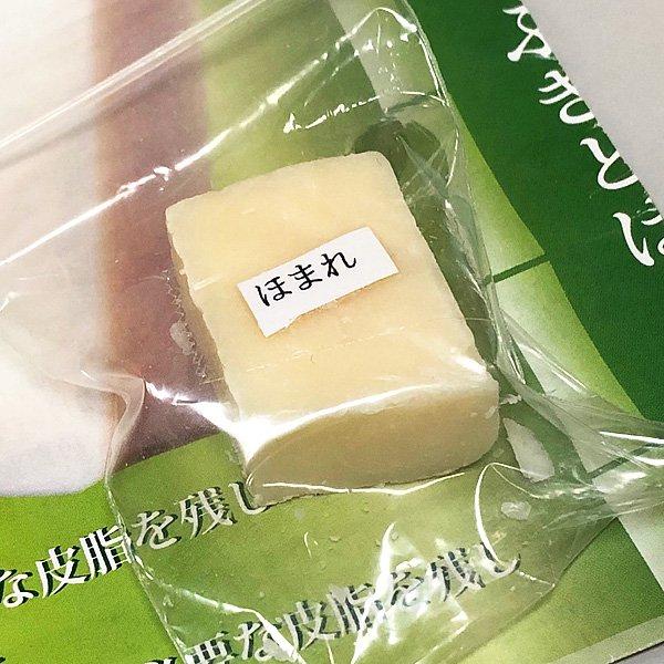 【竹宝石鹸 ほまれ】中年層向け。重量10g。原材料の最高級の竹酢液を9年間熟成したものを使用。若い方より、新鮮な皮脂の量が少なくなるので、保湿分の調整をして、余分に残せるようにしています。