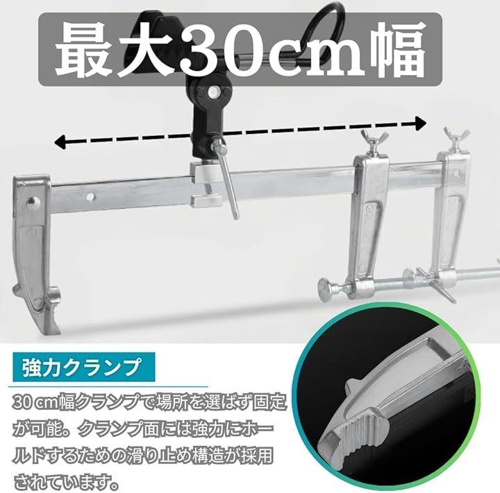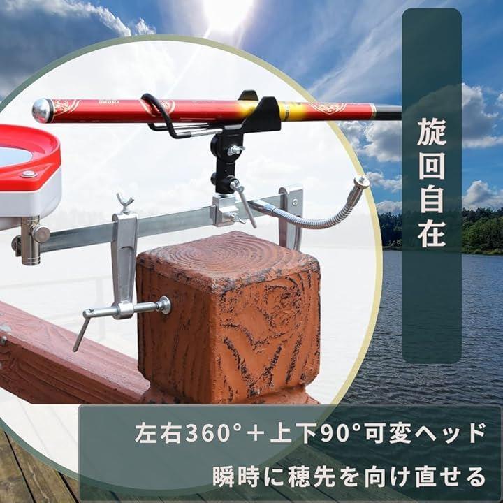 「あらゆる場所で」30 cm幅クランプでガッチリ掴み、船べり・堤防手すり・カヤックのガンネルまで場所を選ばず固定が可能。
